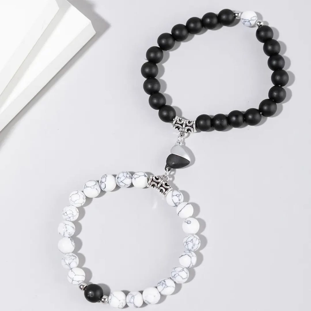Celebrate your bond with the Pearly Glitter™️ Magnetic Heart Couple Bracelets — a timeless symbol of love, connection and togetherness. This 2-piece set features natural Malachite and Tiger Eye stones paired with durable zinc-alloy magnetic heart pendants that attract each other just like you and your partner. Designed in a casual/sporty style, these unisex bracelets are perfect for couples, best friends, or soulmates who want to keep each other close. Lightweight, meaningful, and beautifully crafted — it’s the perfect everyday accessory and the perfect gift for someone special. When the two magnetic pendants meet, they connect into a heart — a reminder that love always finds its way back.